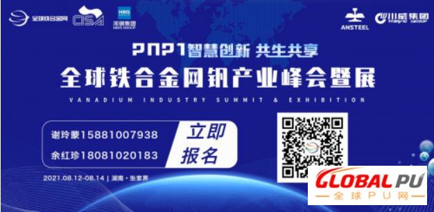 由全球铁合金网主办,中国钢铁工业协会、攀钢集团成都钒钛资源发展有限公司、攀钢集团研究院有限公司、河钢承德钒钛新材料有限公司、川威集团成渝钒钛科技有限公司鼎力支持的「2021钒产业峰会暨展」将于2021年8月12日-14日在湖南张家界举行。