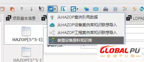 (1)点击HAZOP导入图标-->装置设备原料知识库